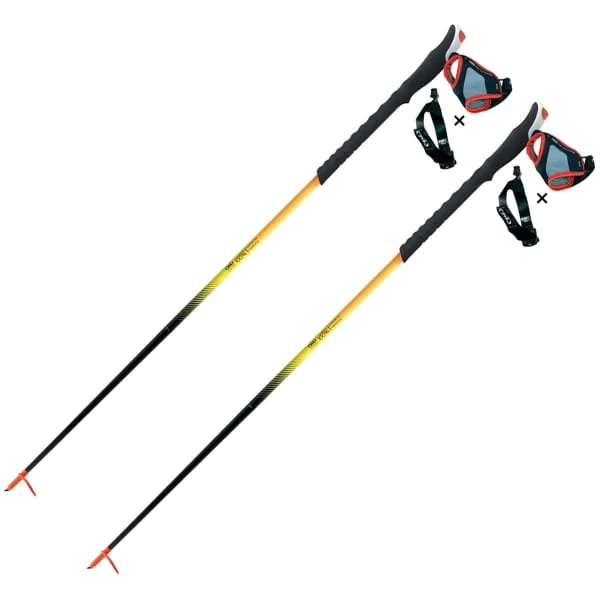 Met zijn volledige carbonstructuur is dit model zeer wendbaar en begeleidt het skiƫrs op een discrete en betrouwbare manier. De lange grip van EVA-schuim is perfect voor het aanpassen van de grip op afdalingen, en het combineert een Magnetic System band voor eenvoudige aanpassing met een standaard tip met een Crossover tip.